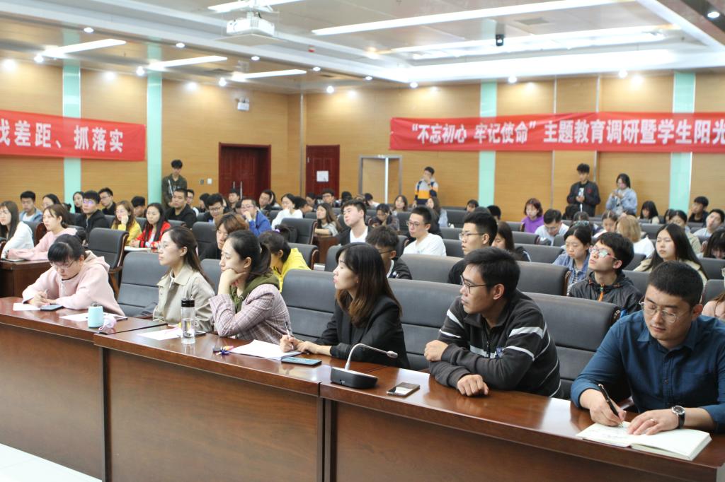 10月10日,beat365中文官方网站在学校第三会议室召开“不忘初心,牢记使命”主题教育调研暨学生阳光对话会。学院党委书记贾喜环,院长王重润,副院长刘颖、杨雪美出席,学院分管党务、教学、科研、学生、就业、征兵、心理、助困、征兵等工作的老师、100余名学生代表参加,会议由党委副书记王冬坡主持。