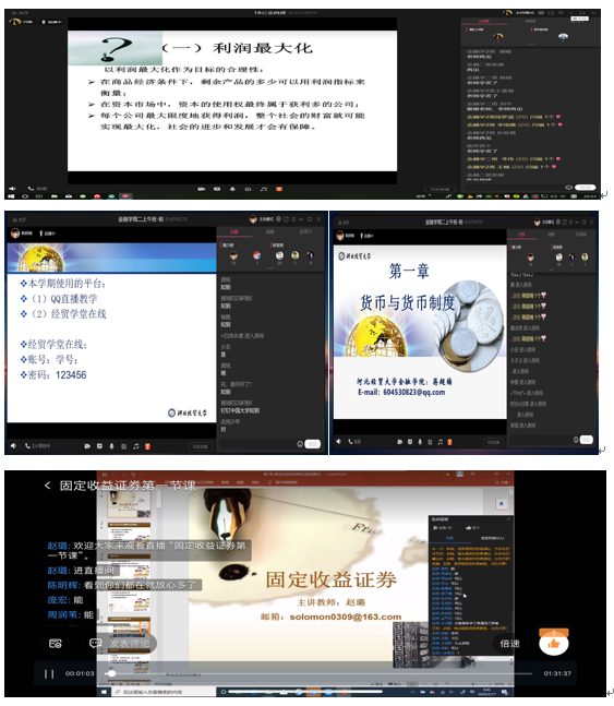 通过学习,老师们基本掌握了远程教学的技术和方法,切实提高了自身信息化水平和在线教学能力,自2月17日开始,beat365中文官方网站教师陆续展开各类在线课程平台教学、直播教学以及混合式等多种教学方式。如闫福教授的《公司金融》通过开通QQ直播间授课,蒋超楠老师的《金融学》采用经贸学堂在线与QQ直播混合的教学模式,李建英教授的《投资项目评估与管理》课程采用中国大学MOOC平台与QQ视频相结合的模式,王风华老师的《银行实务》课程采用在线辅导+智盛智慧金融平台,还有赵璐老师的《固定收益证券》采用钉钉直播模式等等,每一位老师根据课程特点选择合适的平台,采用多样化的授课形式。