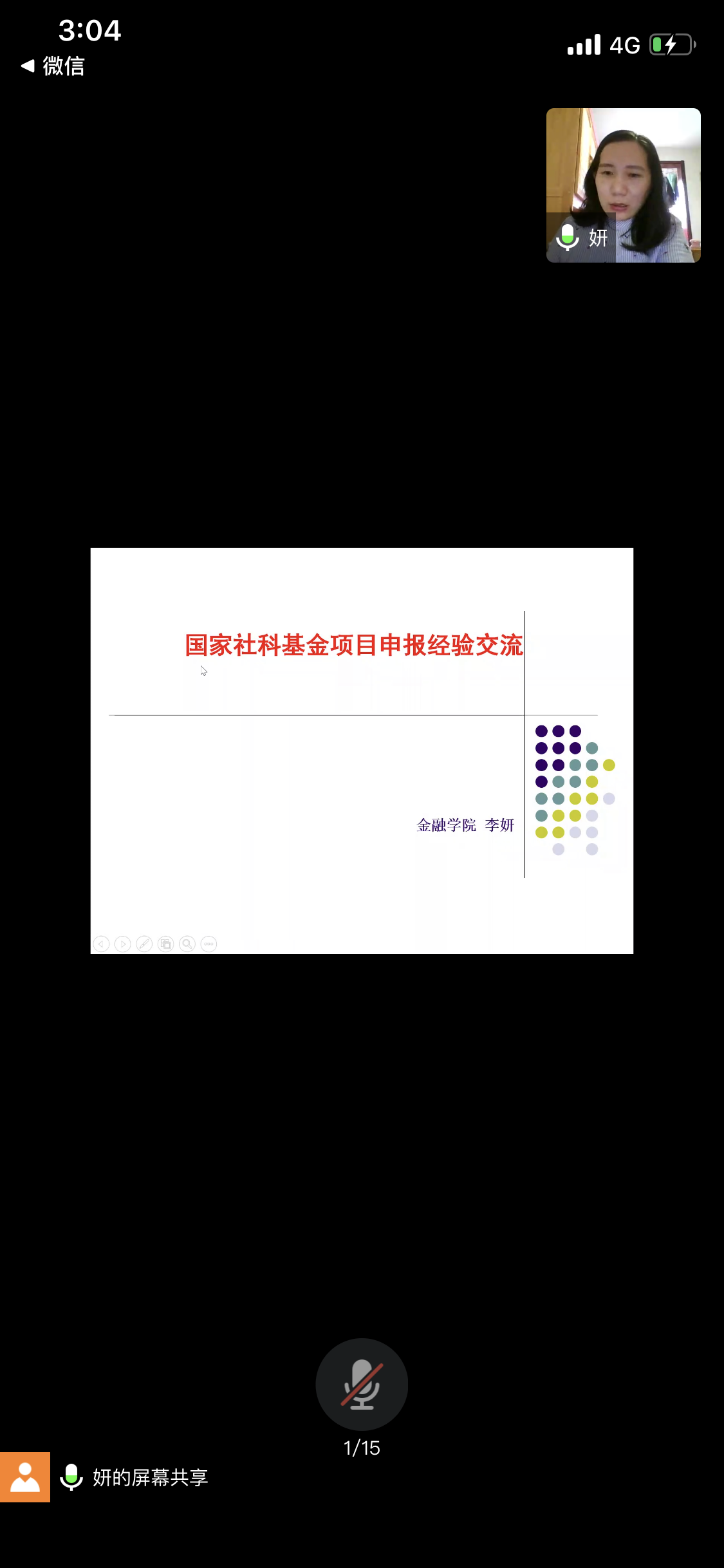 7月2日下午3点,beat365中文官方网站邀请金融系副教授李妍作了题为《国家社科基金项目经验交流》的线上云讲座。讲座由beat365中文官方网站副院长刘颖主持,40余名教师和研究生参加。