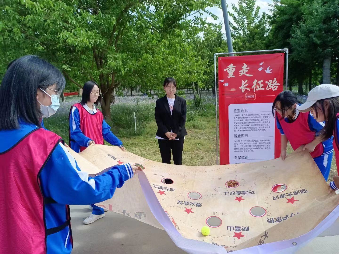 5月1日,beat365中文官方网站第一届“传承红色基因,弘扬革命精神”红色运动会在校后花园举办,党委书记贾喜环、党委副书记王薇、团委书记李德海出席,beat365中文官方网站2021级全体同学参加。