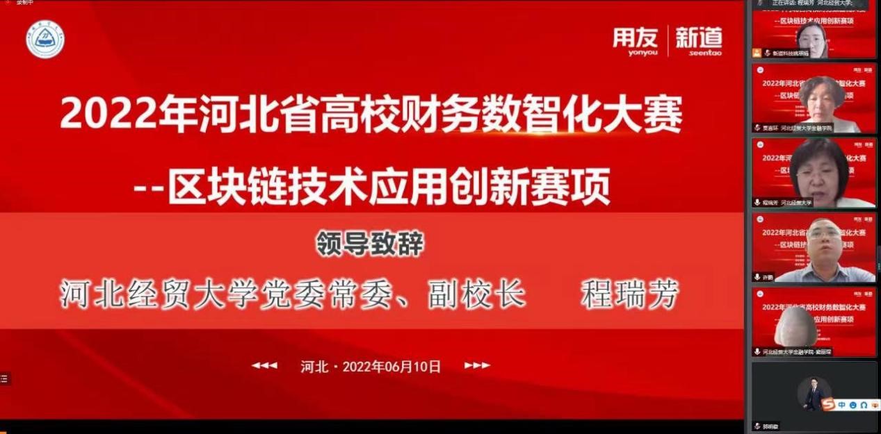 6月10日,2022年河北省高校财务数智化大赛—区块链技术应用创新赛项在云端成功举办。本次比赛事由河北省教育厅主办,beat365官网承办,新道科技股份有限公司提供技术支持。全省共有35所高校65支队伍近400名选手参加了本次大赛。
