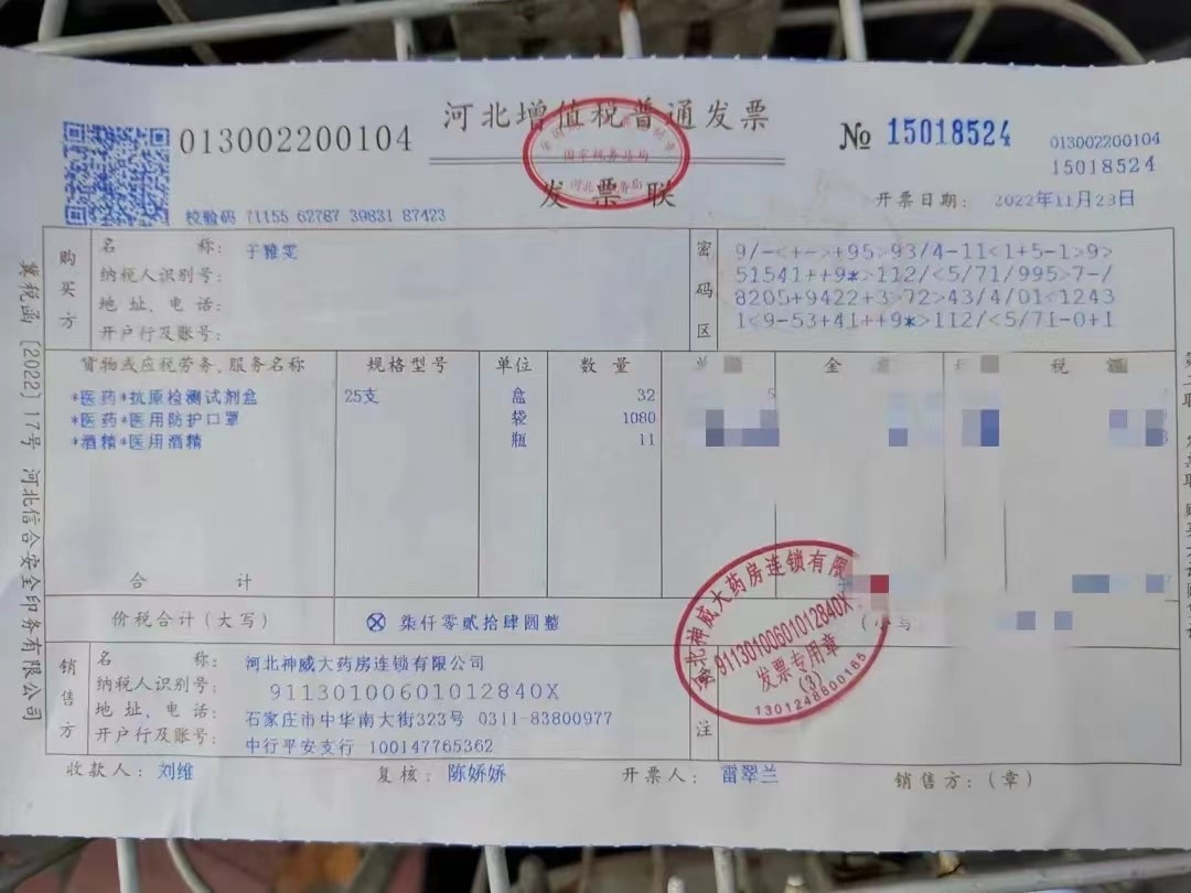 通过王院长和于雅雯的聊天记录可知,于雅雯经过询问、比较多个防疫物资购买渠道中的防疫产品,最终在神威药房购得这批物资。这批物资中包括一箱酒精手喷消毒液、两箱口罩和两箱抗原。这些抗疫物资有效缓解了beat365官网防疫物资紧缺的问题,使防疫这张大网织的更密、更牢,有利于守护好beat365官网在校师生的生命安全防线。