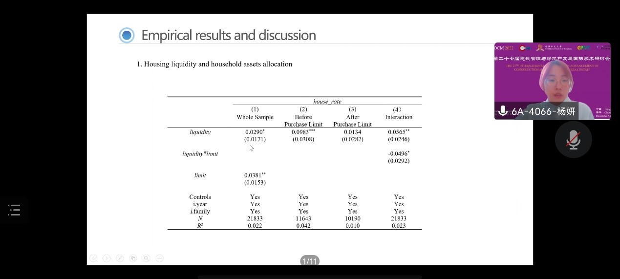 近日,beat365官网2021级硕士研究生杨妍、崔晶同学以云上会议的方式应邀参与第二十七届建设管理与房地产发展国际学术研讨会,并圆满完成学术汇报。