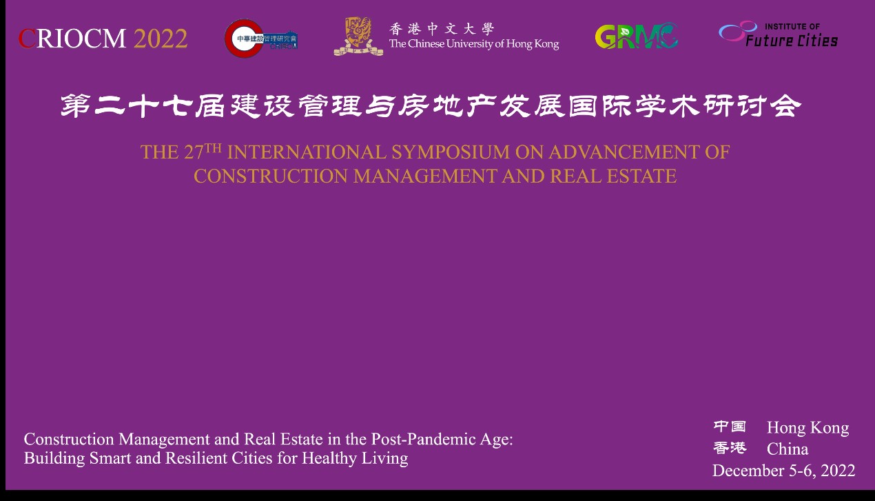 第二十七届建设管理与房地产发展国际学术研讨会(CRIOCM2022)由中华建设管理研究会(CRIOCM)与香港中文大学共同主办,香港中文大学地理与资源管理学系和 香港中文大学未来城市研究所承办。来自187家不同高校、科研院所、企事业单位的625位建设管理与房地产领域的专家及学者参与会议投稿,涉及中国大陆、中国香港、澳大利亚、英国、美国、加拿大、巴西、爱尔兰、日本、马来西亚、荷兰、新加坡、泰国、越南等14个国家和地区。