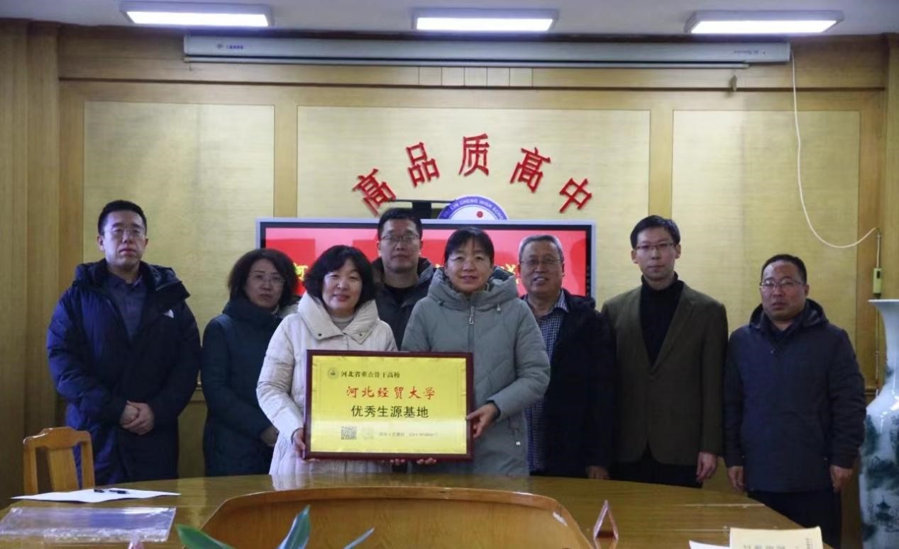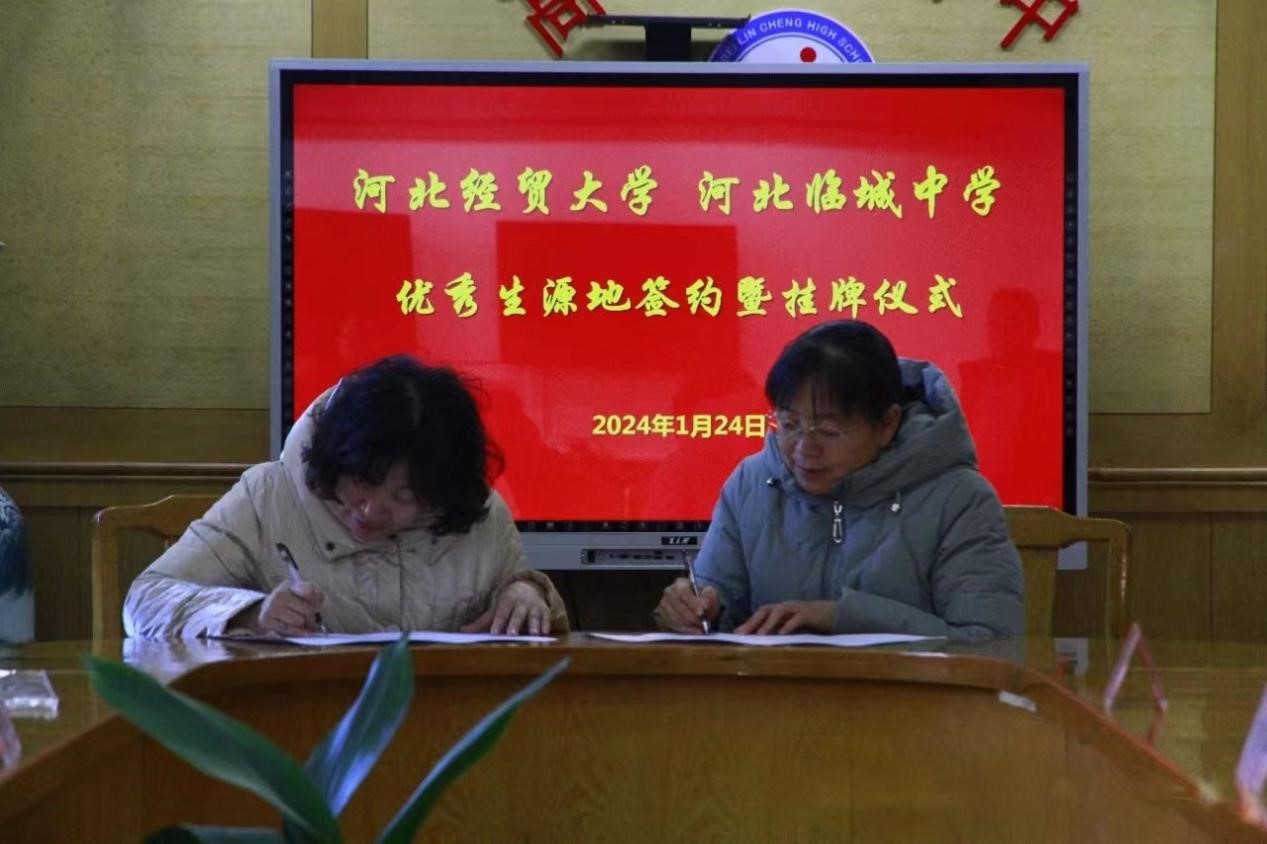 1月24日,beat365官网与河北临城中学共建优秀生源基地签约授牌仪式在临城中学隆重举行。beat365中文官方网站党委书记贾喜环、副院长窦丽琛、辅导员康世宇,临城中学校长鲁振云、副校长王宝新、校长助理李健及相关负责人出席,副校长王宝新主持授牌仪式。