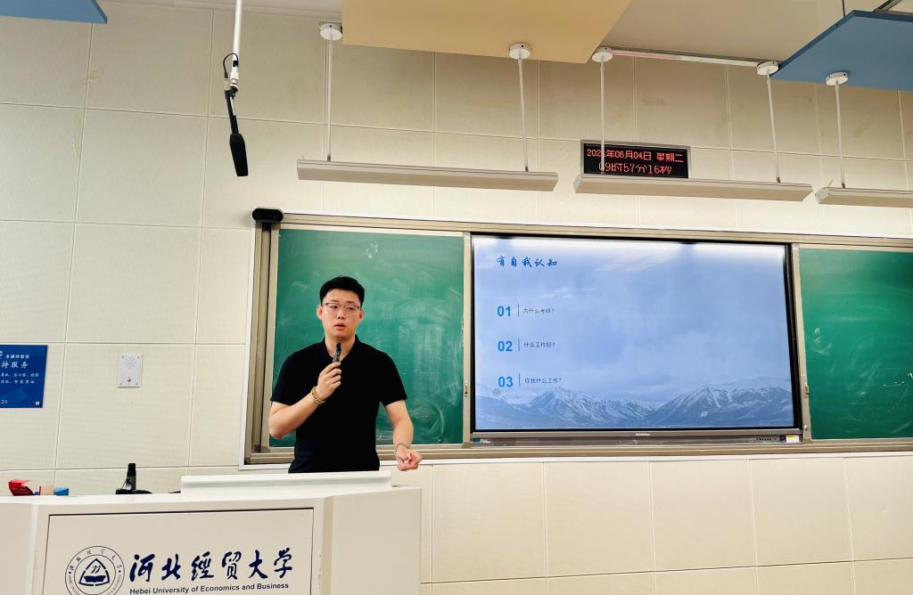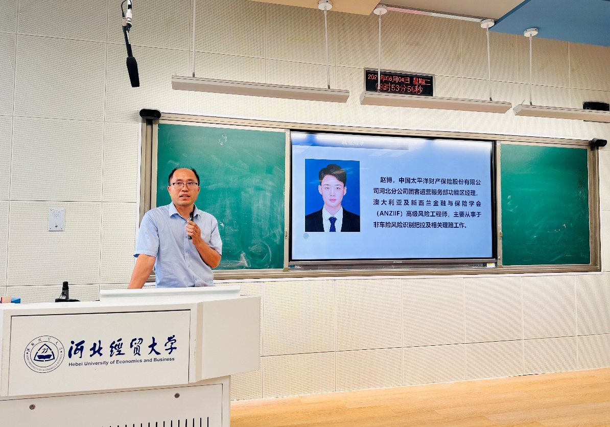 6月4日,beat365官网邀请优秀校友、中国太平洋财产保险股份有限公司河北分公司团客运营服务部功能区经理、澳大利亚及新西兰金融与保险学会(ANZIIF)高级风险工程师赵博为学院学子做了一场关于金融保险行业职业生涯规划的辅导讲座。研究生100余人参加了本次讲座,讲座由副院长范庆祝主持。