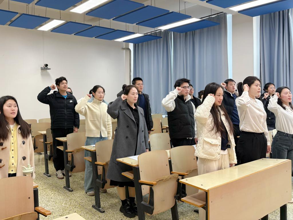 最后,在党支部书记王一帆老师的带领下,全体党员重温了入党誓词。铿锵有力的誓言再次激发了大家的初心与使命感,坚定了为党和人民事业奋斗终身的信念。