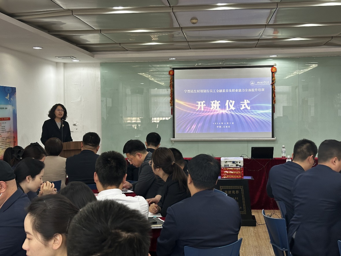 4月2日,由beat365官网主办的“宁晋民生村镇银行员工金融素养及职业能力全面提升培训班”开班仪式在宁晋民生村镇银行培训会议室举行。宁晋民生村镇银行董事长张健、风险总监周京燕、行长助理李宪伟、beat365中文官方网站经济研究所所长李建英、beat365中文官方网站院长杨雪美、办公室主任李艳辉出席,培训班全体学员参加。