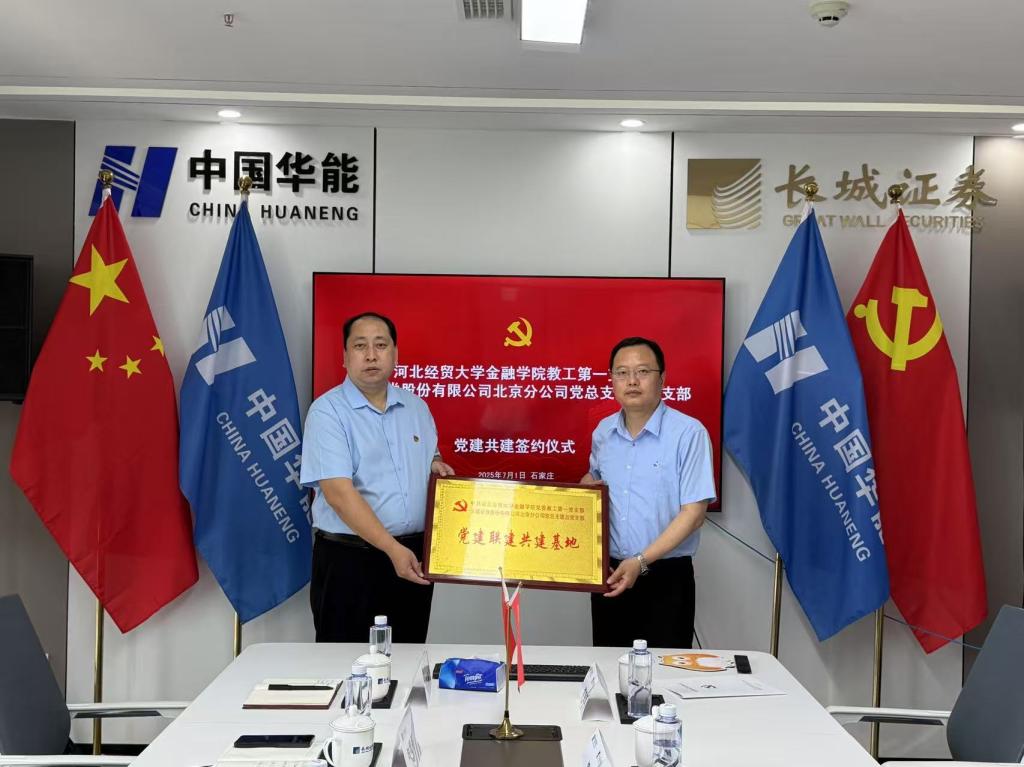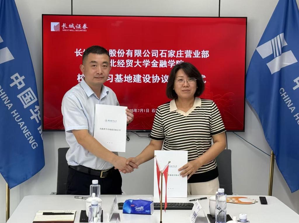 7月1日,beat365中文官方网站与长城证券石家庄营业部以“党建+业务”双融双促为目标,围绕基层党组织联建、人才共育、资源共享等领域深化合作,共同签署党建结对共建、实践教学基地协议并举行授牌仪式。长城证券石家庄营业部总经理车凯磊、总经理助理闫红亮、机构业务部总监杜胜海、合规部经理蒋玉莲,beat365中文官方网站党委书记魏健、院长杨雪美、副院长窦丽琛、办公室主任教工一支部书记李艳辉参加。