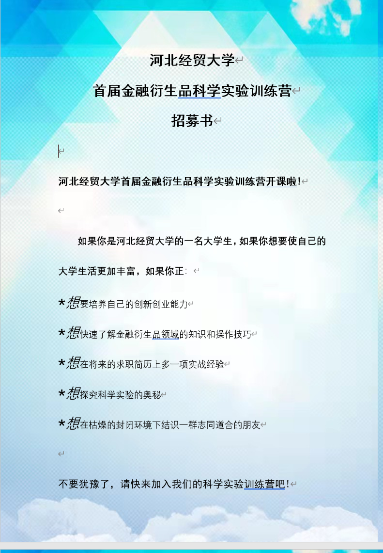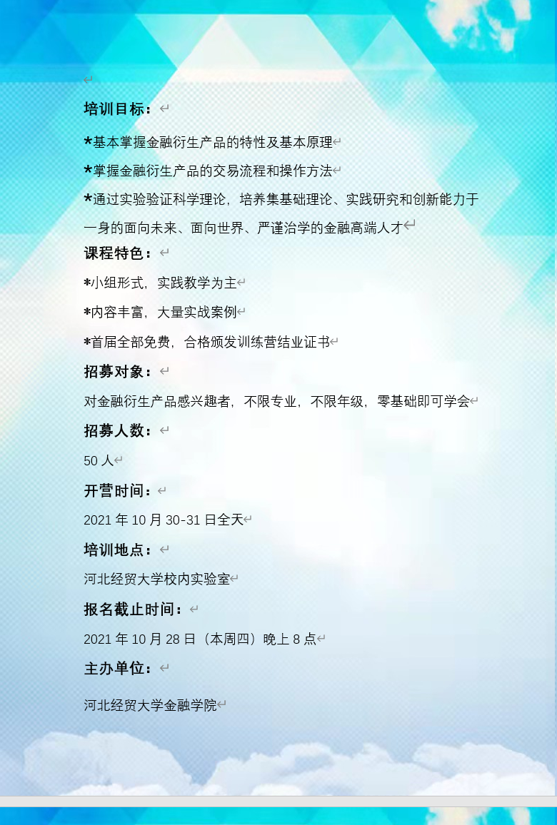 beat365中文官方网站首届金融衍生品科学实验训练营招募书