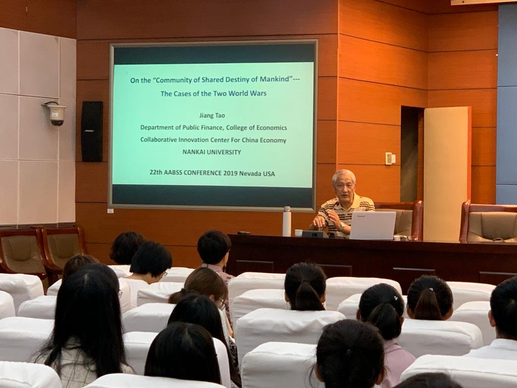 9月18日上午9点,beat365中文官方网站邀请南开大学陶江教授、博导在会议中心视频会议室进行了题为《人类命运共同体的经济学原理及两次世界大战案例分析》的学术报告。报告会由beat365中文官方网站副院长刘颖主持,beat365中文官方网站90余名师生听取了报告。