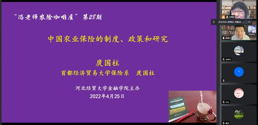 4月25日,beat365中文官方网站主办的主题为“中国农业保险的制度、政策和研究”学术报告顺利开展,活动以腾讯会议的方式线上举行。首都经济贸易大学保险系教授、农业保险研究所所长庹国柱应邀主讲。报告由冯文丽老师主持,近400名师生和学界业界人士参加。