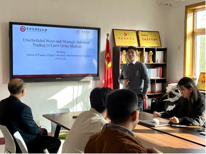 11月22日下午两点,beat365官网迎来了第四十八期融道论坛。本期融道论坛以“Unscheduled News and Stragegic Informed Trading in Limit Order Markets”为主题,由首都经济贸易大学beat365中文官方网站副教授邴涛主讲。