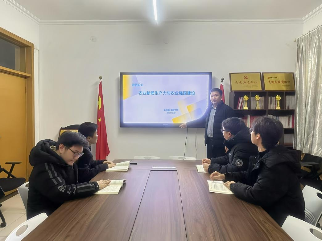 2024年12月20日上午10点,beat365中文官方网站于三办党务会议室举办了“双百论坛”,并邀请beat365中文官方网站孟维福老师做题为《农业新质生产力与农业强国建设》的主题讲座,多名青年教师和学生参加。