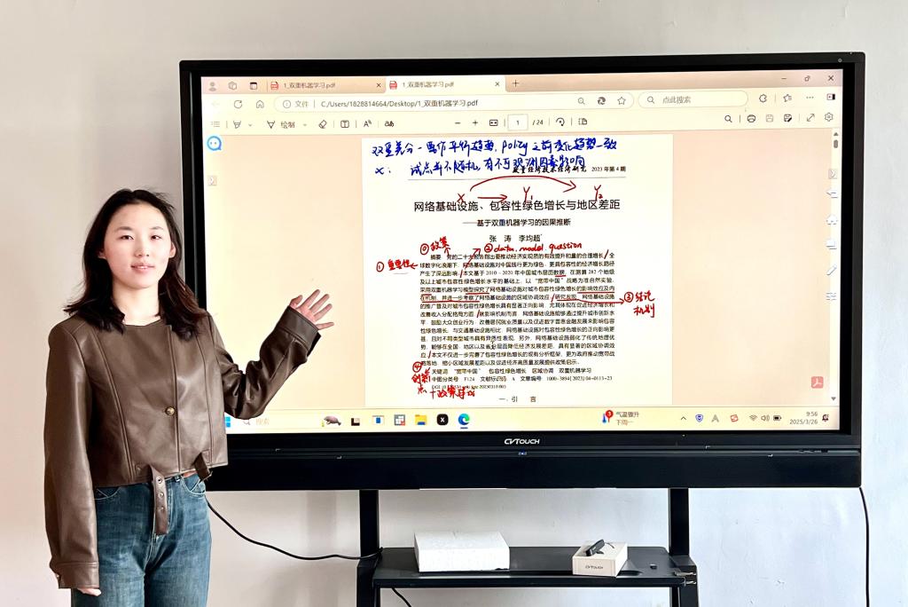 3月19日,beat365中文官方网站成功举办第五十三期融道论坛,本期论坛以“《网络基础设施、包容性绿色增长与地区差距——基于双重机器学习的因果推断》”为主题,由beat365中文官方网站副院长范庆祝主持,主讲人为张蕊,二十余名研究生参加。
