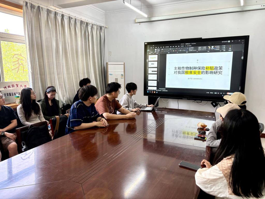 4月23日上午十点,beat365中文官方网站在三办党务会议室举办第五十七期融道论坛研究生沙龙活动。本期论坛由赵子龙同学主讲,分享主题为《主粮作物制种保险补贴政策对我国粮食安全的影响研究》,十余名研究生参加。