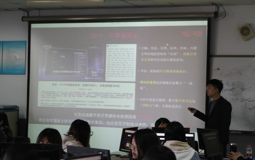 10月23日至24日,beat365中文官方网站联合北京新道科技有限公司举办了区块链金融专场培训会。此次培训由北京新道科技王永俊老师主讲,beat365中文官方网站部分老师以及19级金融科技实验班全体学参加。
