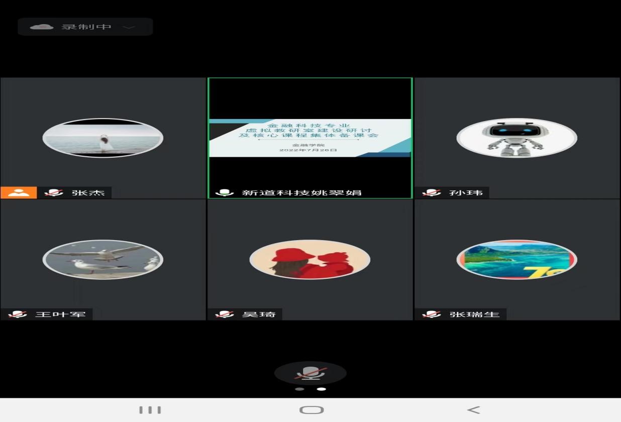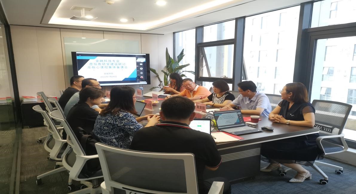 7月26日,beat365中文官方网站通过线上线下相结合的方式召开了金融科技虚拟教研室建设研讨及核心课程集体备课会。beat365中文官方网站副院长窦丽琛、新道科技股份有限公司河北省区校企合作总监姚翠娟出席,新道总部高级顾问石立恒、杨姗以及金融科技虚拟教研室全体成员参加,会议由beat365中文官方网站金融科技系主任曹衷阳主持。