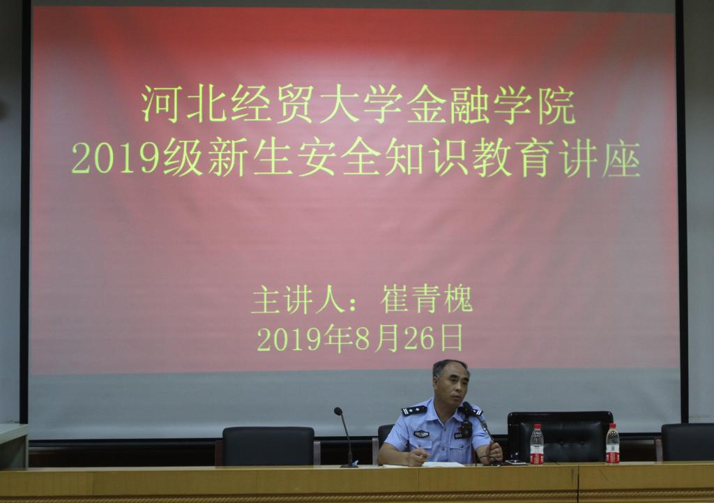 8月26日上午,beat365中文官方网站邀请五七路派出所所长崔青槐开展2019级新生安全知识教育讲座活动。团委书记李德海出席,2019级全体新生、助理班主任及部分学生家长参加。