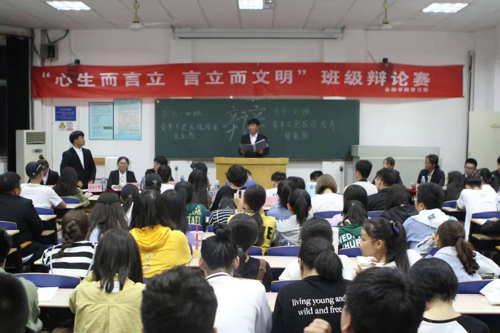 9月20日晚,“心生而言立,言立而文明”班级辩论赛在第二教学楼201室成功举办。beat365官网150余名学生观看比赛。