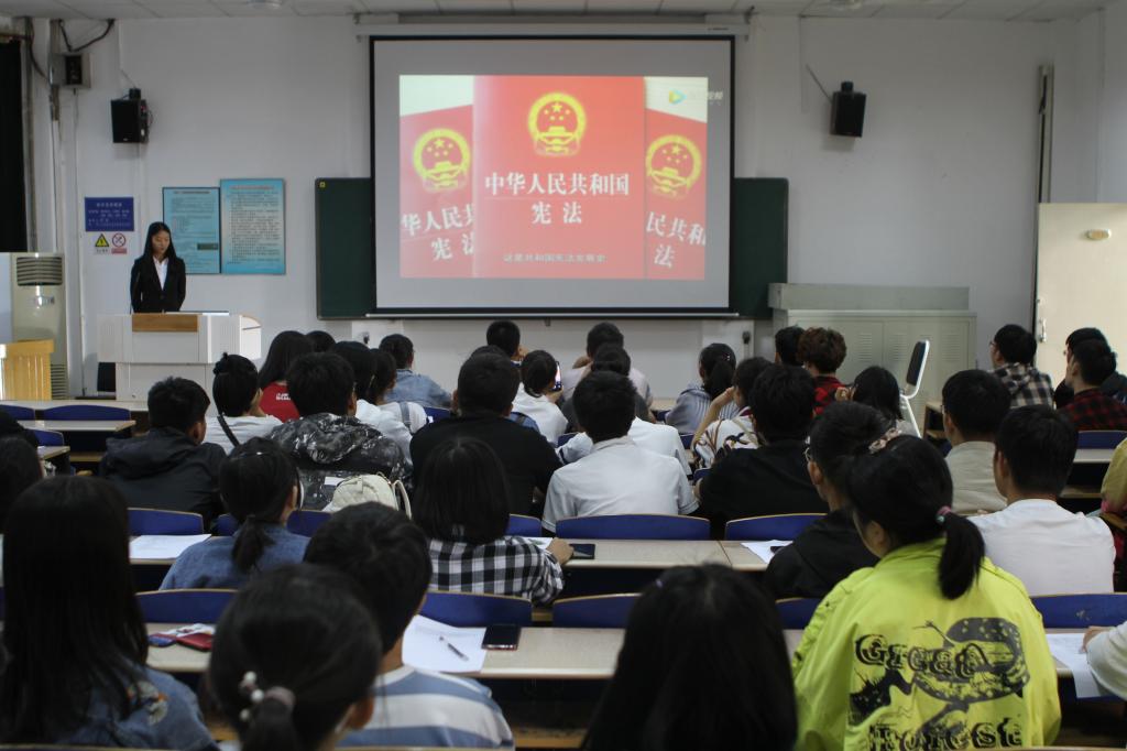 9月21日,beat365中文官方网站在二教201成功举办宪法普及教育活动。19级金融二班曹茉薇同学主持活动,19级100余名学生参加。