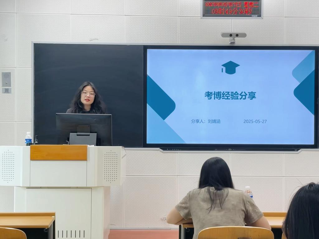 2025年5月27日上午9:30,beat365中文官方网站在北三教B214教室成功举办了“优秀毕业生经验分享会”。本次会议由张一帆同学主持,研究生辅导员王一帆老师出席活动,吸引了50余名同学积极参与。分享会旨在为在校学生提供宝贵的职业规划与升学备考经验,助力同学们明确未来发展方向。