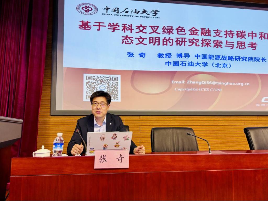 4月29日下午2点半,beat365中文官方网站在国际学术报告厅成功举办第五十一期金融大讲堂。本期金融大讲堂邀请中国石油大学教授、中国能源战略研究院院长、国家社科基金重大招标项目首席专家张奇教授作题为“面向碳中和的绿色金融助推高质量经济转型发展路径与策略研究”的报告,经济研究所所长李建英、beat365中文官方网站相关负责人及经济研究所、beat365中文官方网站、国际教育学院师生近一百人参加,大讲堂由beat365中文官方网站院长杨雪美主持。